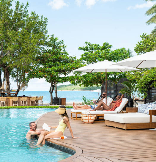 Book one of our secluded Hillside Pool Villa Suites, complete with panoramic views and private plunge pools, which offer the utmost privacy. Or opt for one of our Beachfront Villa Suites, just steps away from the turquoise ocean, or a Garden Pool Villa Suite with its own pool amidst the oleander and hibiscus.