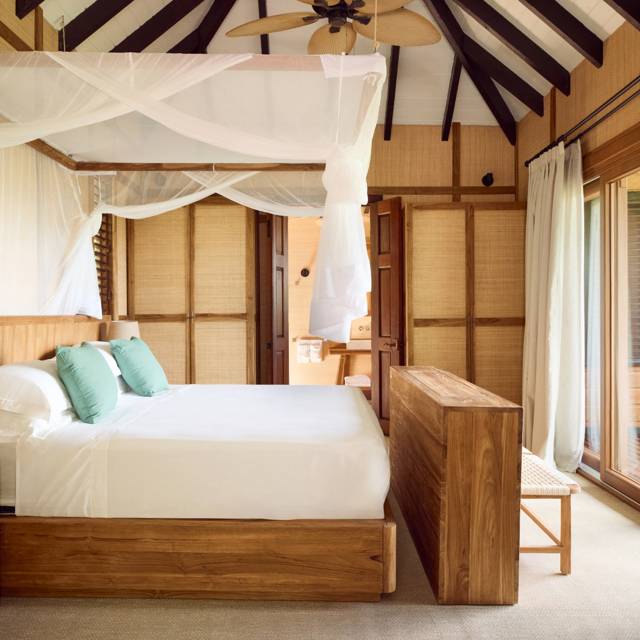 Set within the sound of waves, these generous split-level villas have private decks, many with swings; perfect for watching the magnificent sunset here. A few steps across the white sand will bring you to the warm turquoise ocean.