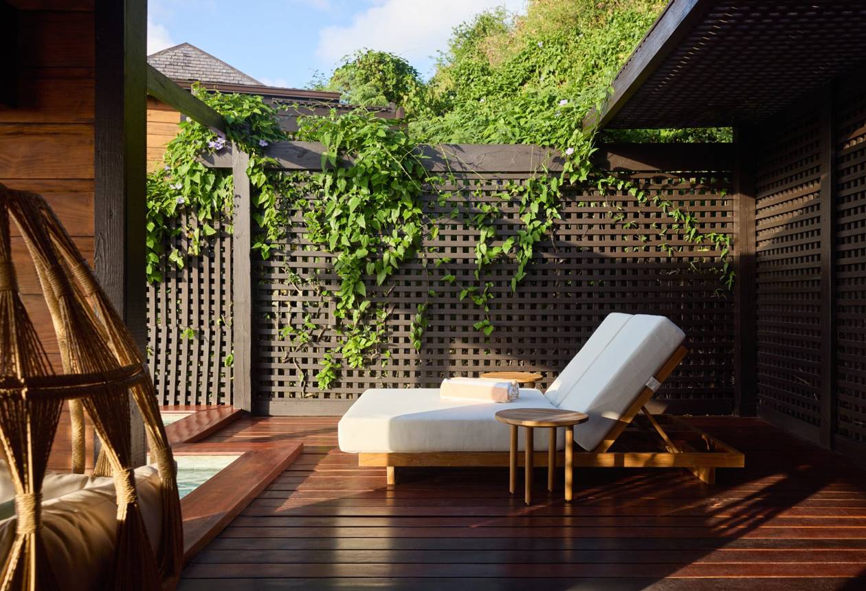 Just like our Beachfront Villas, each one of these spacious, split-level suites features elegantly styled interiors, a shady decking area complete with double day bed, chairs, and a luxurious outdoor shower.