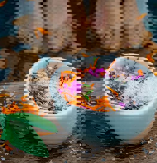 Each ritual begins with a refreshing foot bath that combines pure Himalayan salts, selected fruits or flowers with specially blended essential oils. A herbal tea is provided to aid in your pre-massage relaxation, soothe the body and focus the mind on the positive affirmations that will enrich and heighten your treatment experience.
